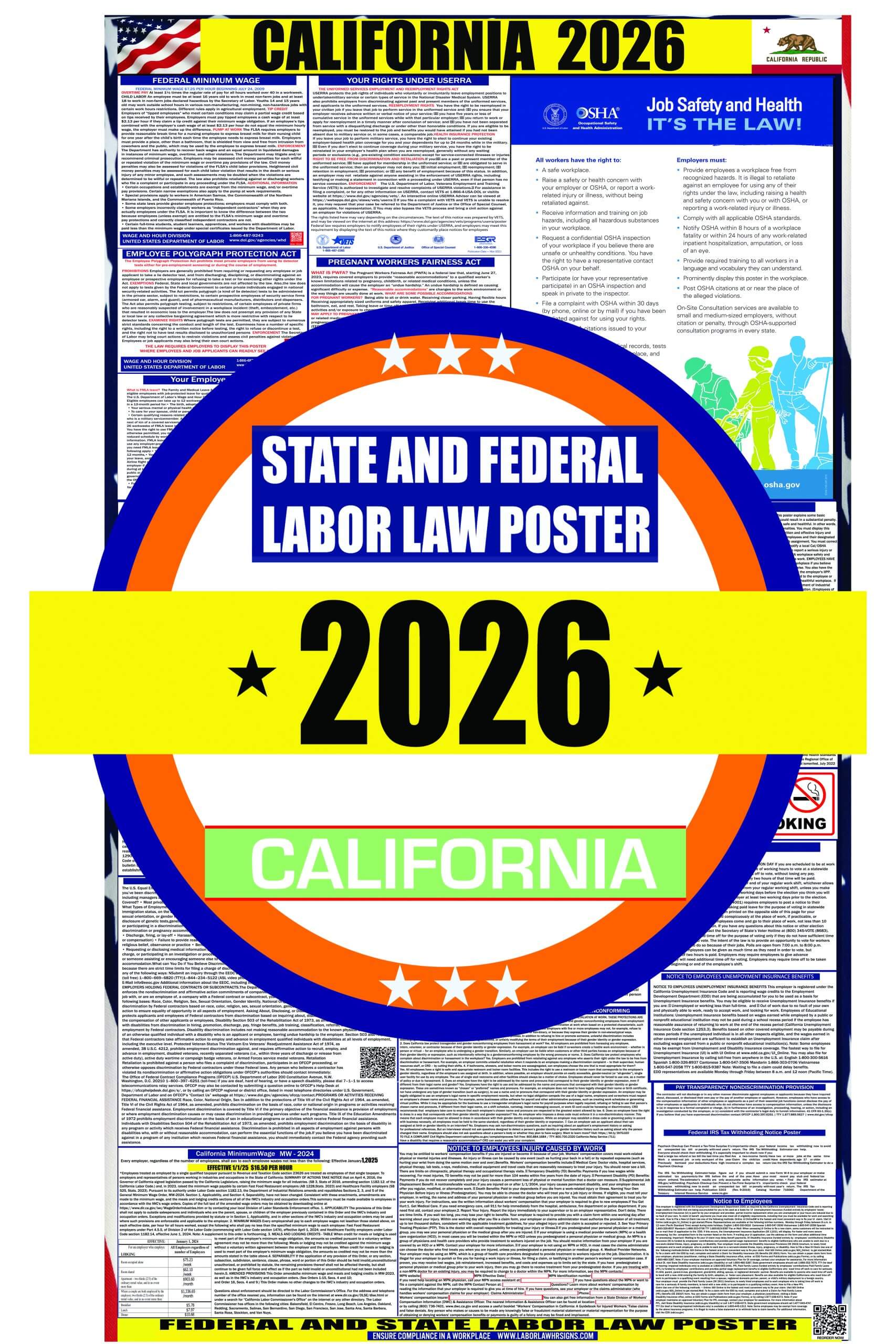 California generally updates labor laws each year. In 2026 , the state updated several policies, including sick leave, workers’ compensation, and the minimum wage. Failure to post the updated compliance signs can lead to a costly violation. Also, because these posters inform employees of their rights, failure to have updated signs can harm relationships between employers and workers.