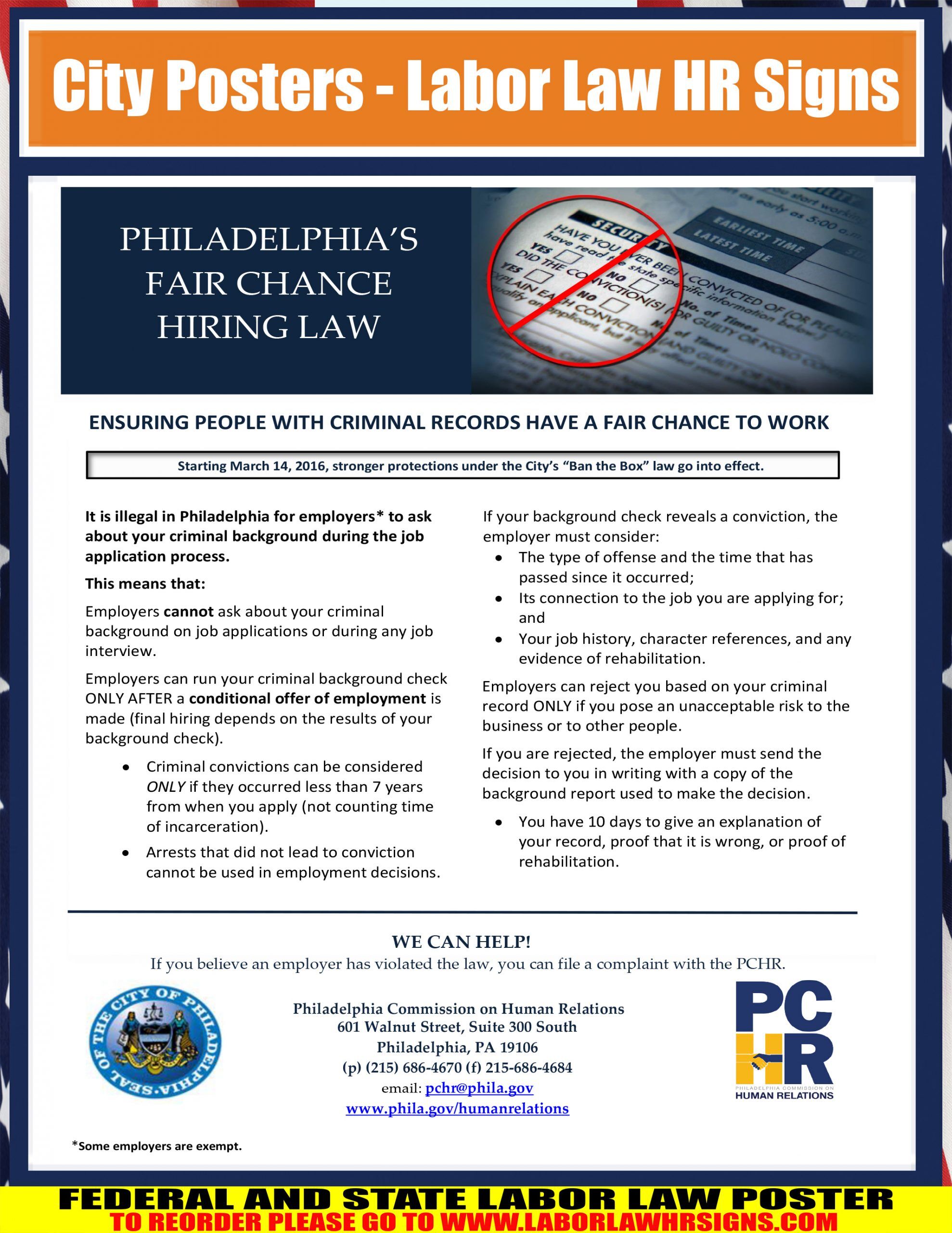 Pennsylvania – philadelphia’s Fair Chance Hiring Law City Poster
