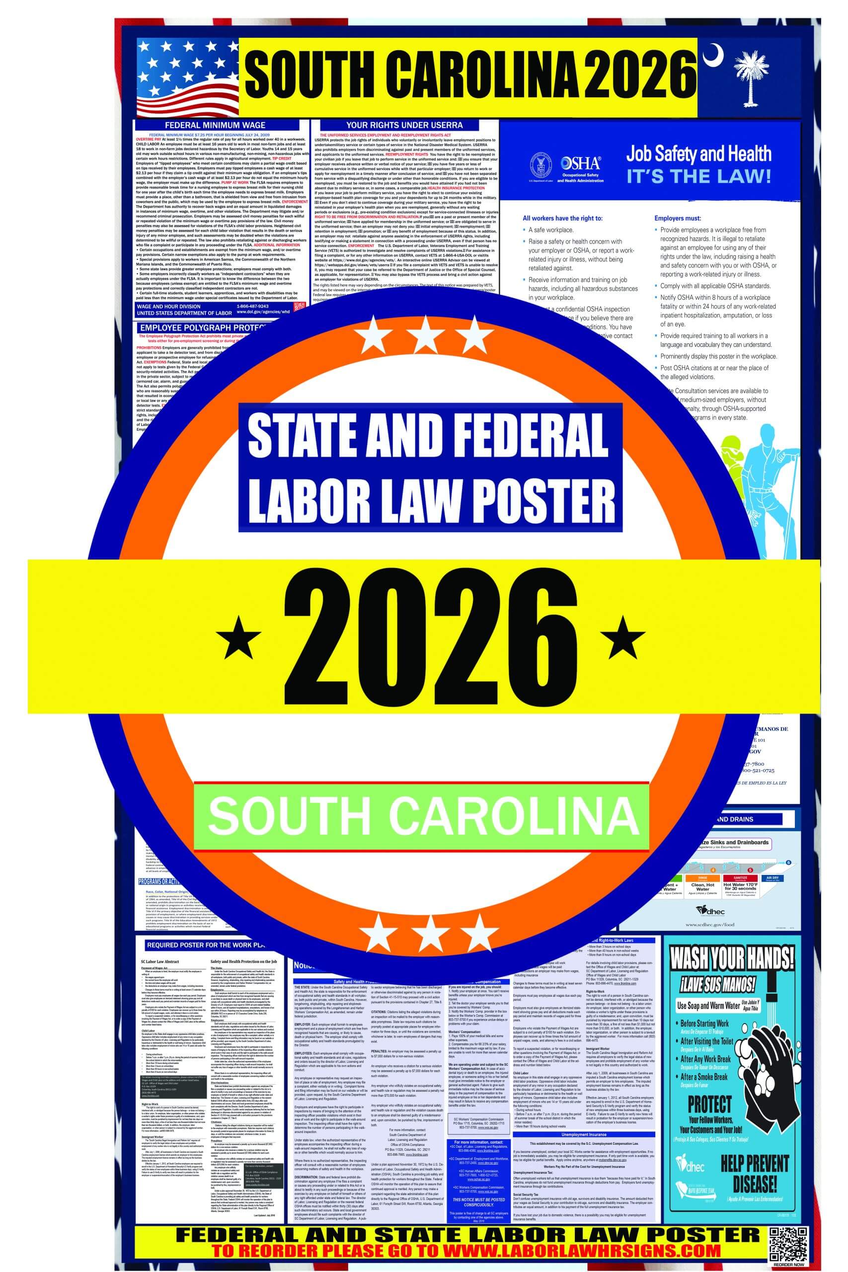 Our Update Plan Program Provides All Of the Updates for the your 2026 South Carolina Labor Law Poster. Please Select ” Updates Program Plan ” on the following page and Receive All Of the Updates for Your 2026 Workplace Posters, 2025 , 2025 Minimum Wage Posters and all of the Federal And State 2026 Breakroom Compliance Posters”.