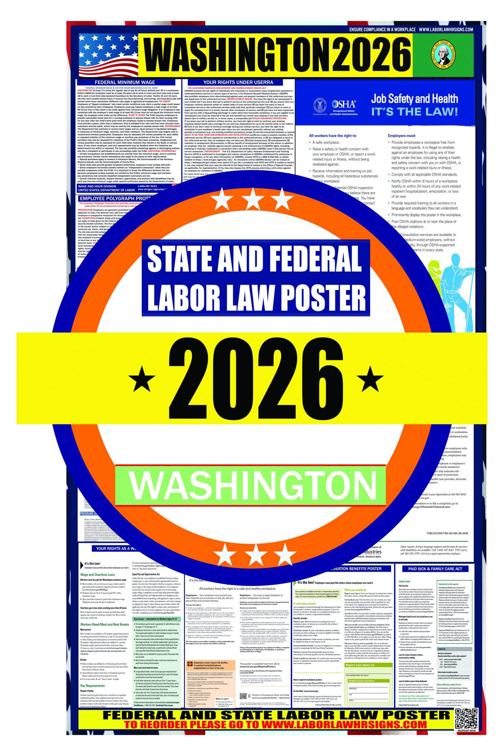 Our Update Plan Program Provides All Of the Updates for the your 2024 Washington Labor Law Poster. Please Select ” Updates Program Plan ” on the following page and Receive All Of the Updates for Your 2026 Workplace Posters, 2026 , 2026 Minimum Wage Posters and all of the Federal And State 2026 Breakroom Compliance Posters”.